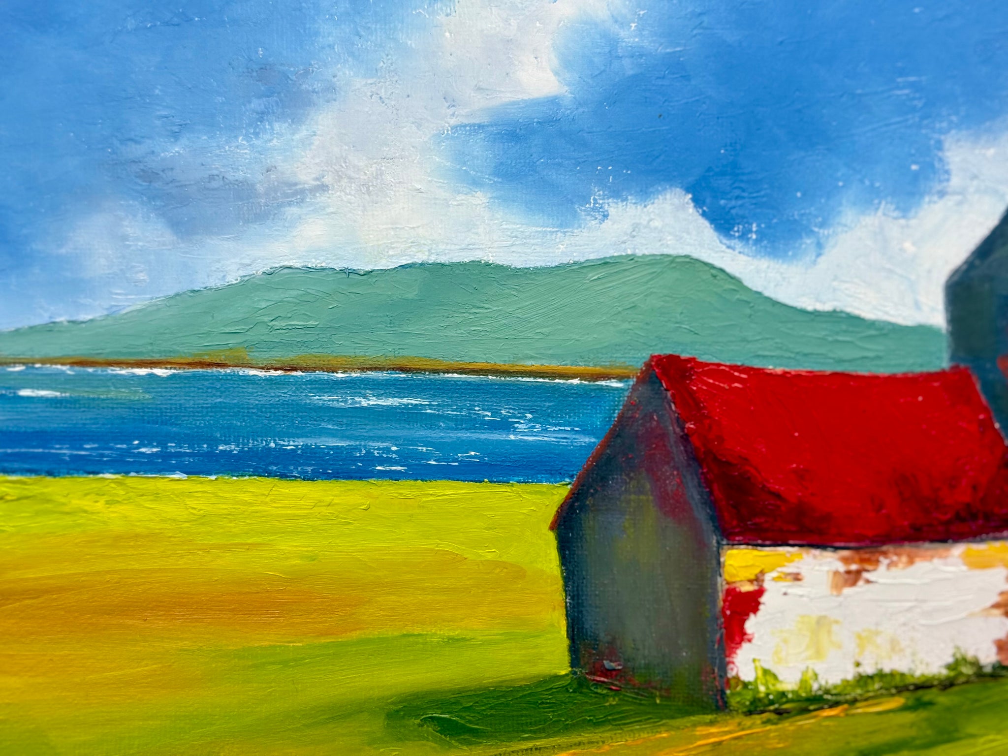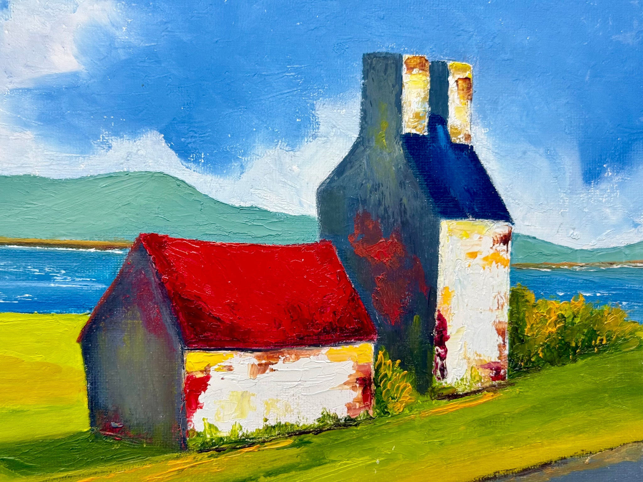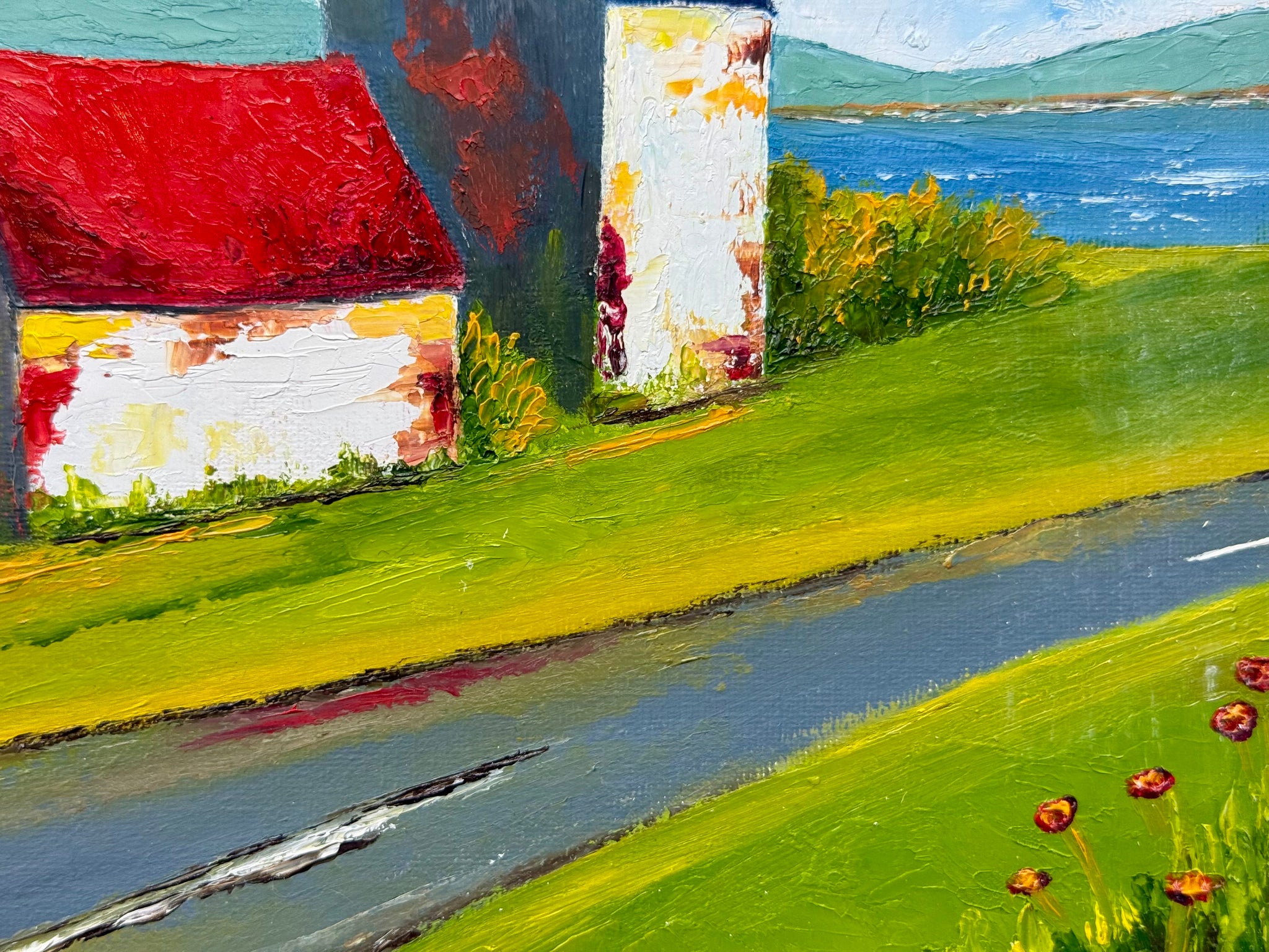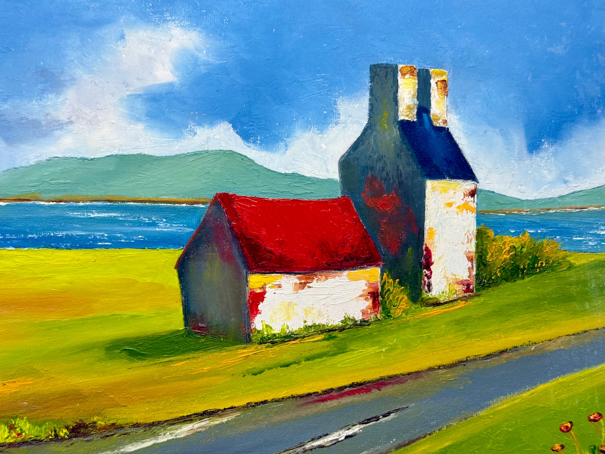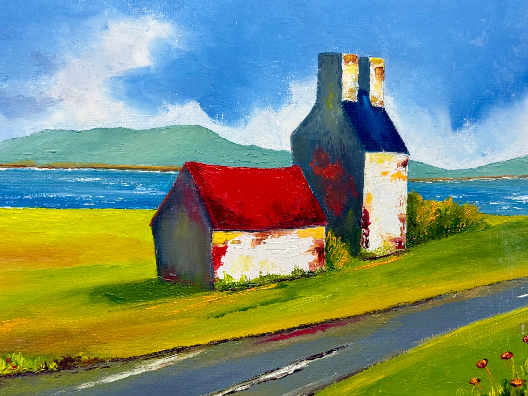 From Drimoleague, I found one of her paintings on the floor at the framers and when I asked James, he filled me in on the fact that she only painted for friends and family as gifts, as she didn’t think she was good enough. How wrong she was. She took a bit of convincing but sold her first two paintings on the same day I hung them and has been flying ever since.