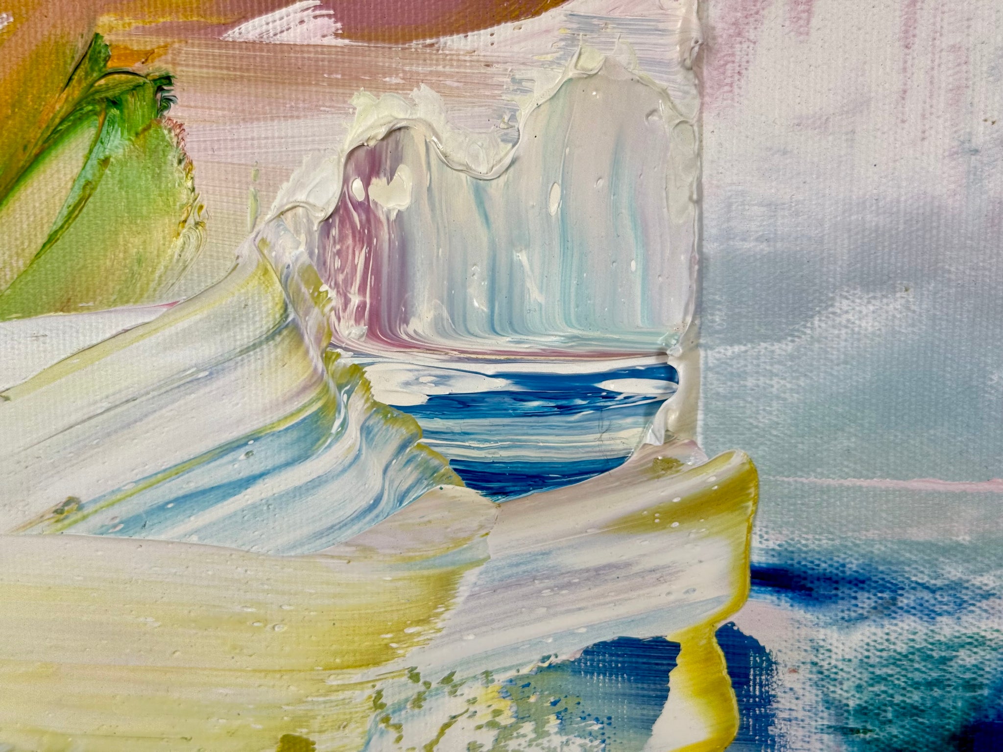 She is a devoted wife and mother of two great young adults. She wears her heart on her sleeve but lucky for us she also wears it on her paintings as well. She uses colour like no one else, to show people the beauty of the West Cork and the Islands but especially of her beloved home, Sherkin Island, where she lives on the top of her own little beach. From here she can watch the tides, ferries and in general life go by and catches those moment like no one else, with layer after layer of beautiful rich paint. She has to live with her paintings before she is ever happy to let them find their forever homes.