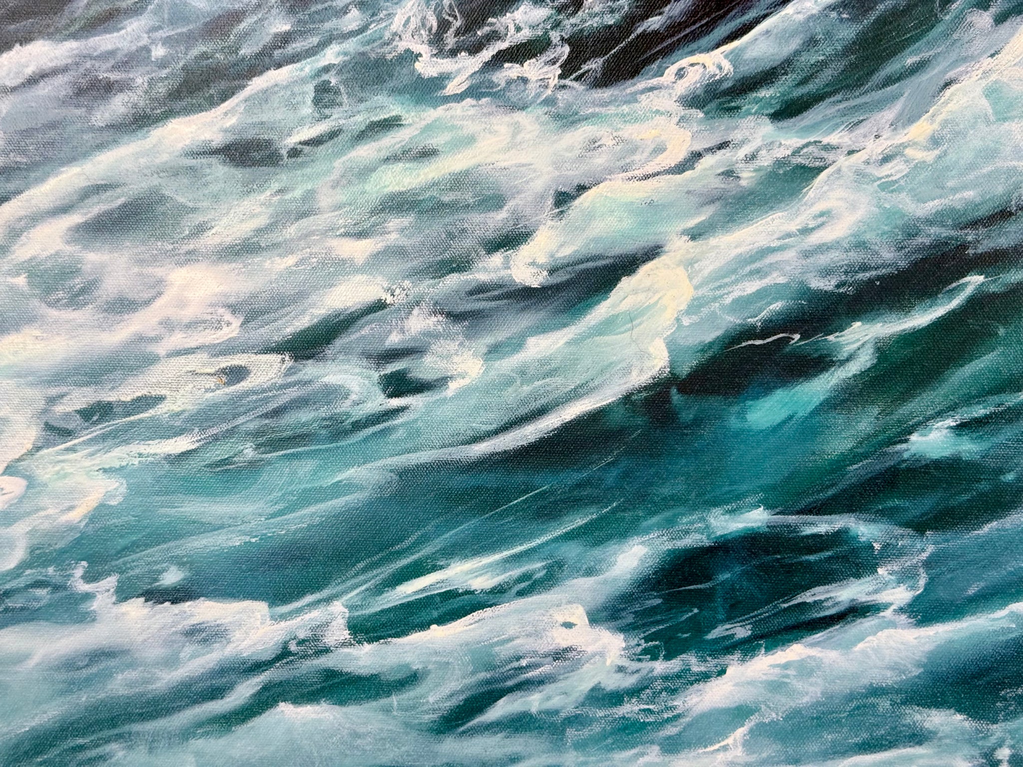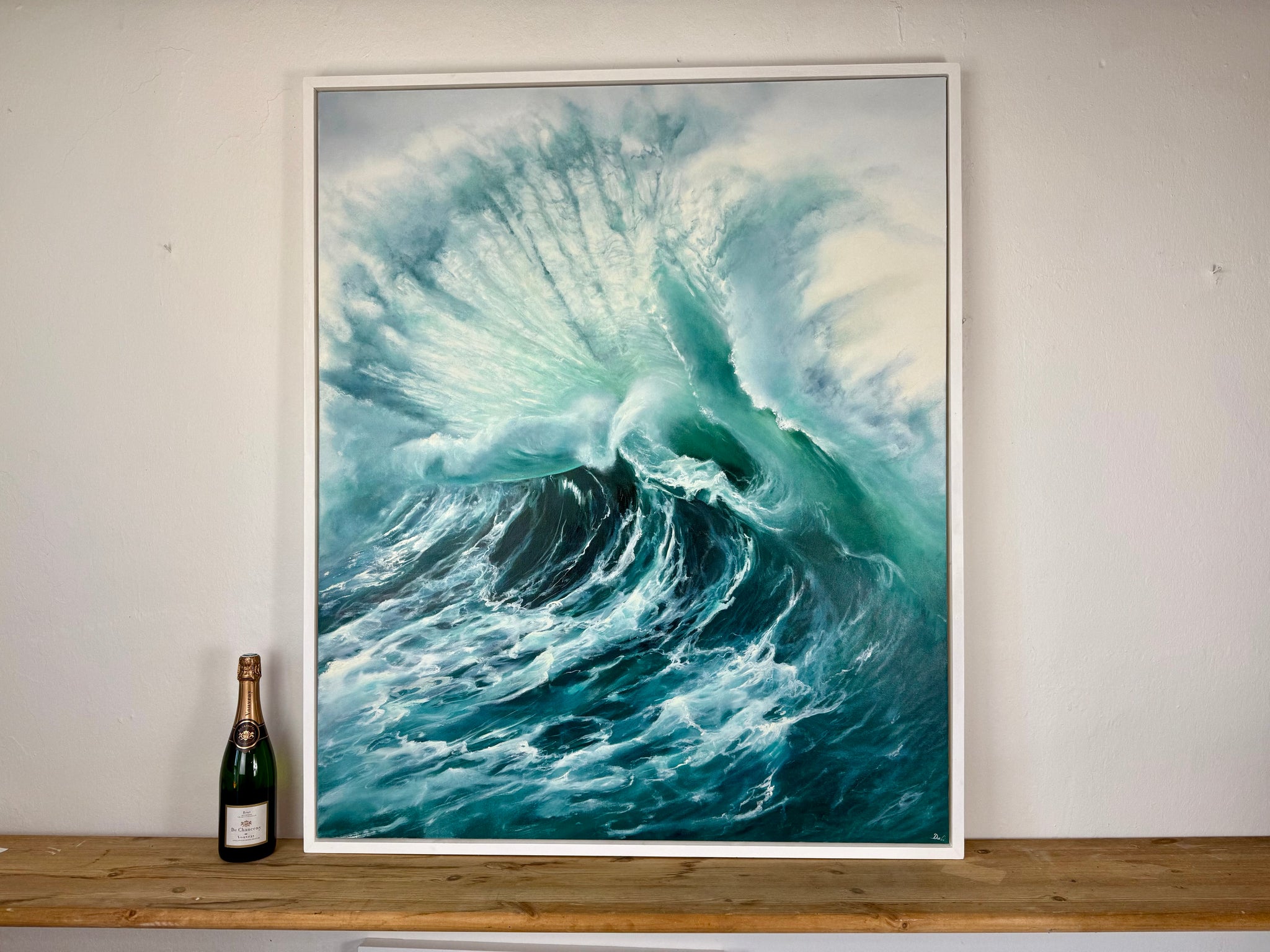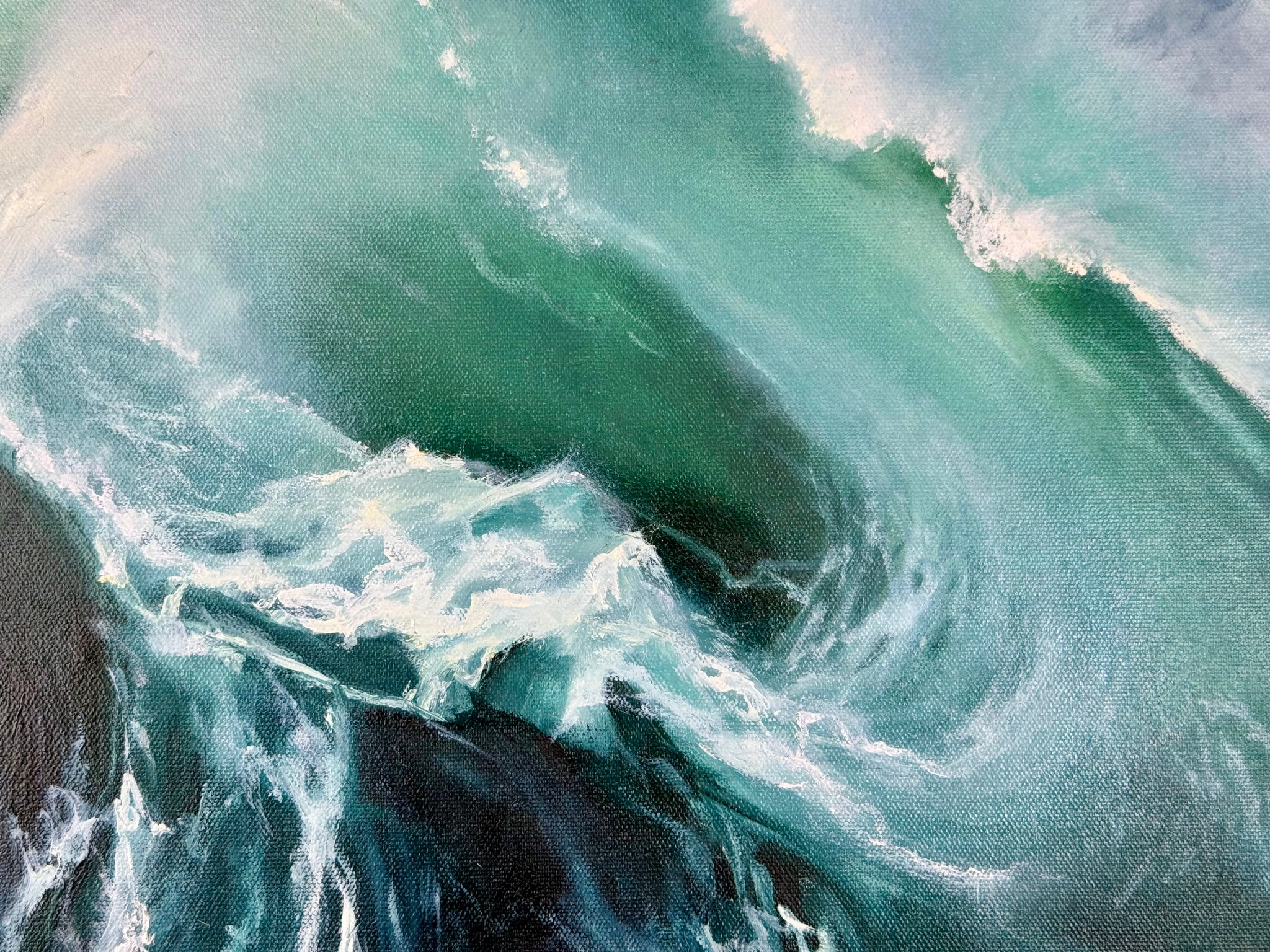 A stunning painting The Wave on the rocks off West Cork. 100 x 120 plus frame. With hand made natural paints