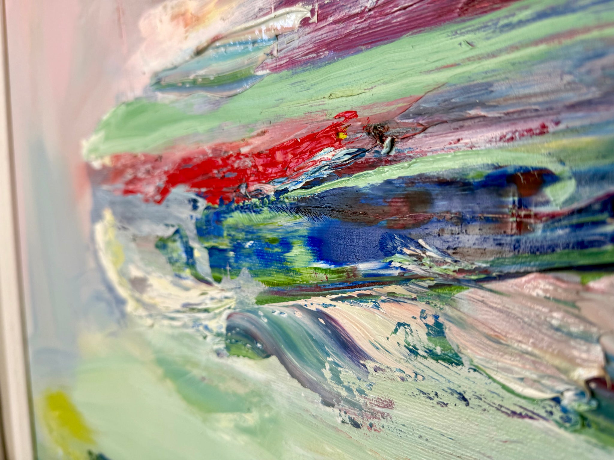 The colours of Wet Cork Summers by Majella O’Neill Collins. Just Stunning. Oil on Canvas and 150 x 100 cm ex Frame.
